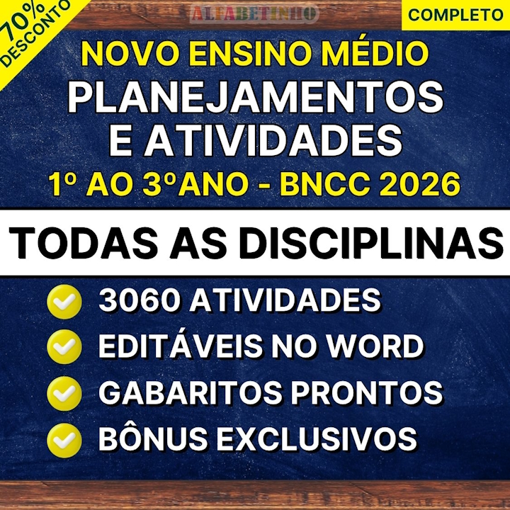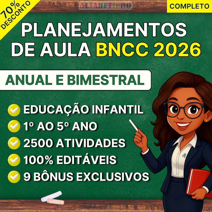 Os planejamentos mais completos do brasil, planejamentos de acordo com a BNCC em PDF e EDITÁVEIS NO WORD, com todas as disciplinas para facilitar sua vida, nossos planos são para: ENSINO FUNDAMENTAL 1º ao 5º ano.