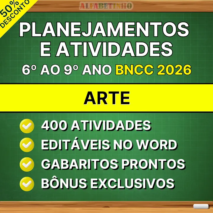 Planejamentos anuais de Arte do 6º ao 9º ano do ensino fundamental INÉDITOS, EDITÁVEIS e PRONTOS PARA APLICAR. Hoje você vai receber também atividades bimestrais prontas contendo todos os códigos da BNCC e mais 3 BÔNUS EXCLUSIVOS.