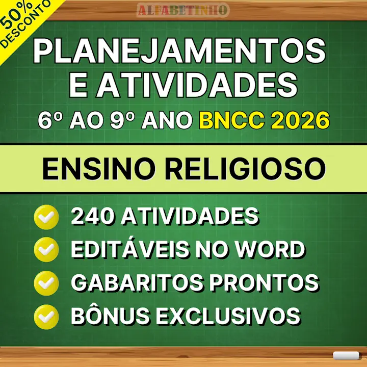 Planejamentos anuais de Ensino Religioso do 6º ao 9º ano do ensino fundamental INÉDITOS, EDITÁVEIS e PRONTOS PARA APLICAR. Hoje você vai receber também atividades bimestrais prontas contendo todos os códigos da BNCC e mais 3 BÔNUS EXCLUSIVOS.