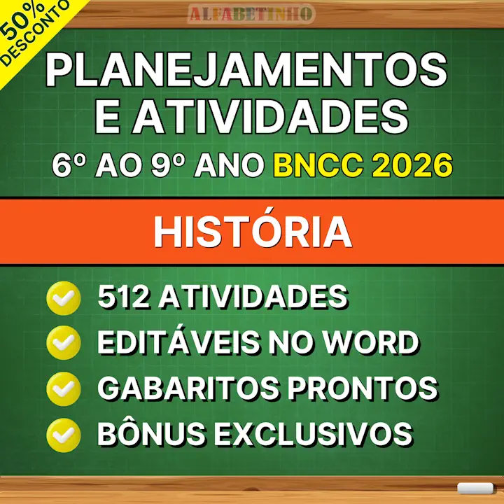 Planejamentos anuais de História do 6º ao 9º ano do ensino fundamental INÉDITOS, EDITÁVEIS e PRONTOS PARA APLICAR. Hoje você vai receber também atividades bimestrais prontas contendo todos os códigos da BNCC e mais 3 BÔNUS EXCLUSIVOS.
