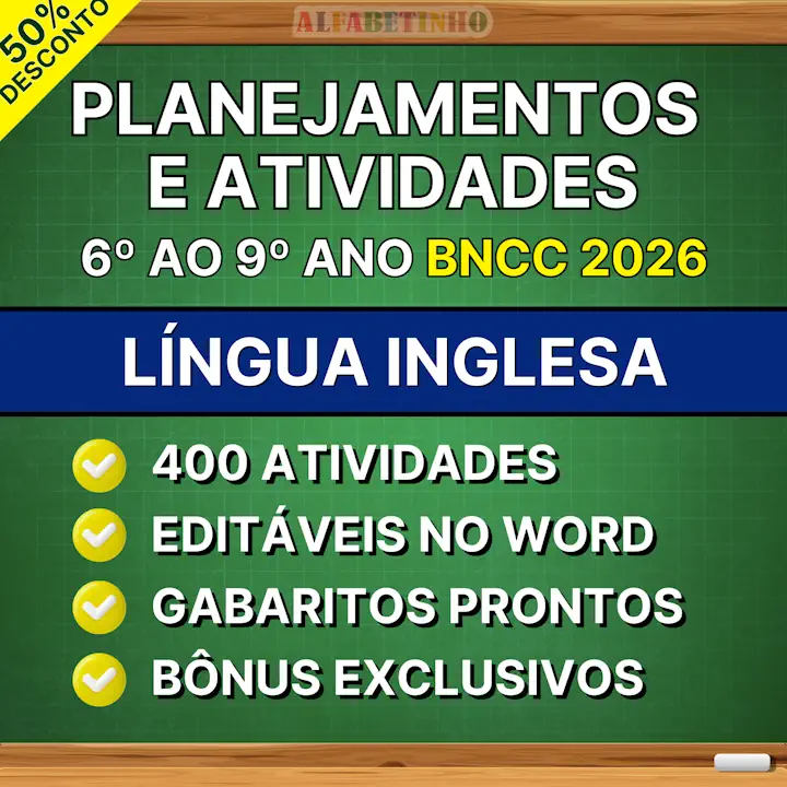 Planejamentos anuais de Língua Inglesa do 6º ao 9º ano do ensino fundamental INÉDITOS, EDITÁVEIS e PRONTOS PARA APLICAR. Hoje você vai receber também atividades bimestrais prontas contendo todos os códigos da BNCC e mais 3 BÔNUS EXCLUSIVOS.