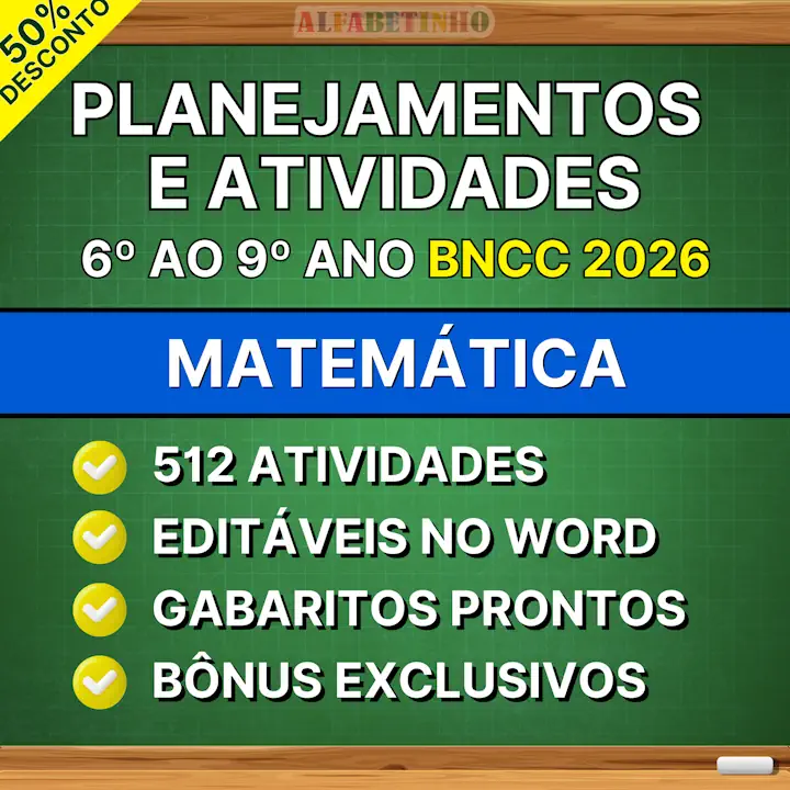 Planejamentos anuais de Matemática do 6º ao 9º ano do ensino fundamental INÉDITOS, EDITÁVEIS e PRONTOS PARA APLICAR. Hoje você vai receber também atividades bimestrais prontas contendo todos os códigos da BNCC e mais 3 BÔNUS EXCLUSIVOS.